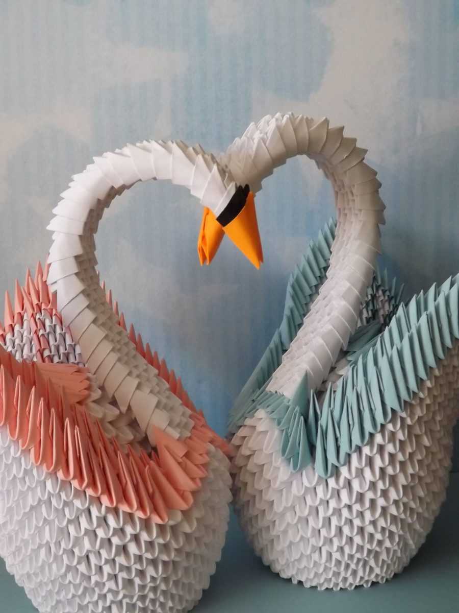 Гордо поднятая белая голова на чёрной длинной шее. Взмах крыльев сильный в порыве полёта. Мгновение остановилось. Кажется, ещё чуть-чуть, и игрушка из модулей оживёт. Настолько красивая может быть сделана такая поделка.