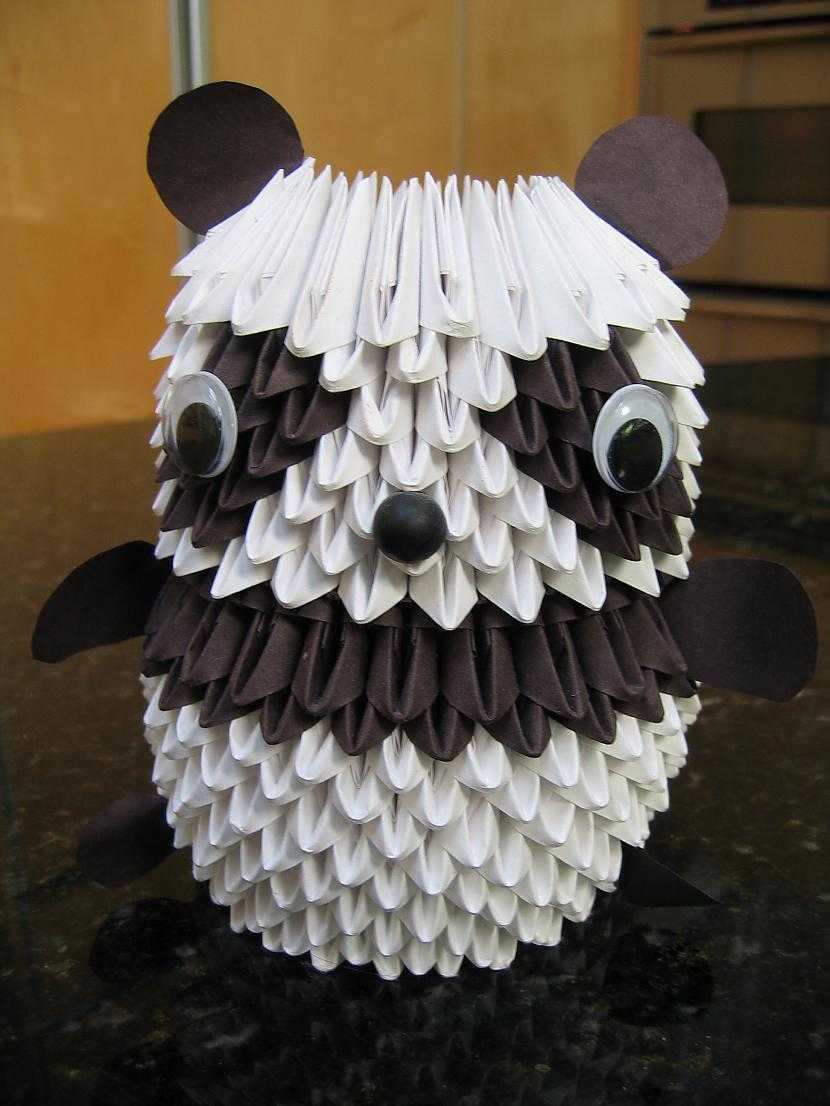 Например, при создании зайца из модулей. Да, надо их много, этих модулей. Но какой пушистый зайчик получится! Причём у него будет разноцветное платье выполнено из разноцветных модулей.