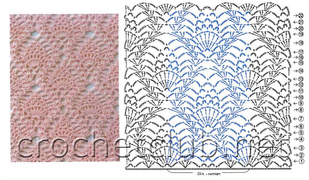 Ажурные «ананасовые» узоры для шалей вяжем по схемам, представленным в этой подборке. Даже начинающая мастерица найдёт несложный узор для своего будущего вязаного изделия.