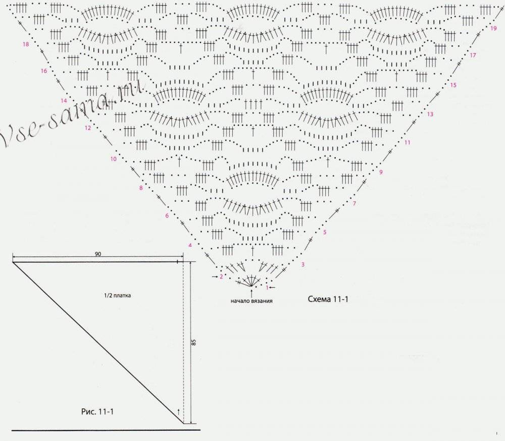 В этой статье вы найдете схемы платков при помощи крючка. Платок для женщины – это такая вещь, которая никогда не выйдет из моды. Различные вариации этого аксессуара можно носить на голове, на плечах, вокруг шеи или вокруг бедер. Он подчеркивает женственность, защищает от холода, дополняет образ – словом, никак не грозит платку выйти из моды. Случается, чтобы довершить образ, нужен платок определенного цвета, или фактуры, а в продаже найти, никак не получается. Если вы дружите с крючком и спицами, задача существенно упрощается, потому что связать платок крючком по подробной схеме не так уж сложно даже для начинающих рукодельниц. К тому же схемы обычно сопровождает пошаговое описание, щедро сдобренное фото и видео материалами. Узоров для платка тоже великое множество, главное, определиться с выбором. Ажурное тонкое изделие можно носить не только зимой и осенью – некоторые модели не будут казаться неуместными и летом.