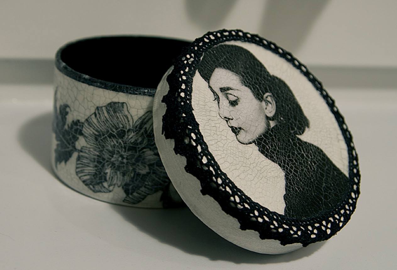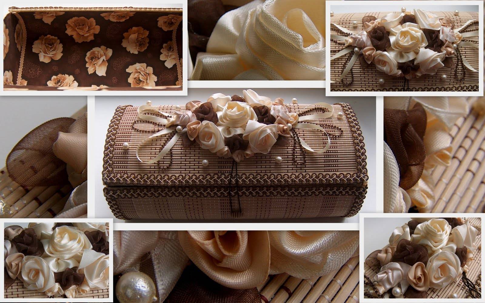 Готовая шкатулочка, выполненная из любого материала, в обязательном порядке украшается, для придания красивого, «праздничного» внешнего вида. Что используют в качестве декора: