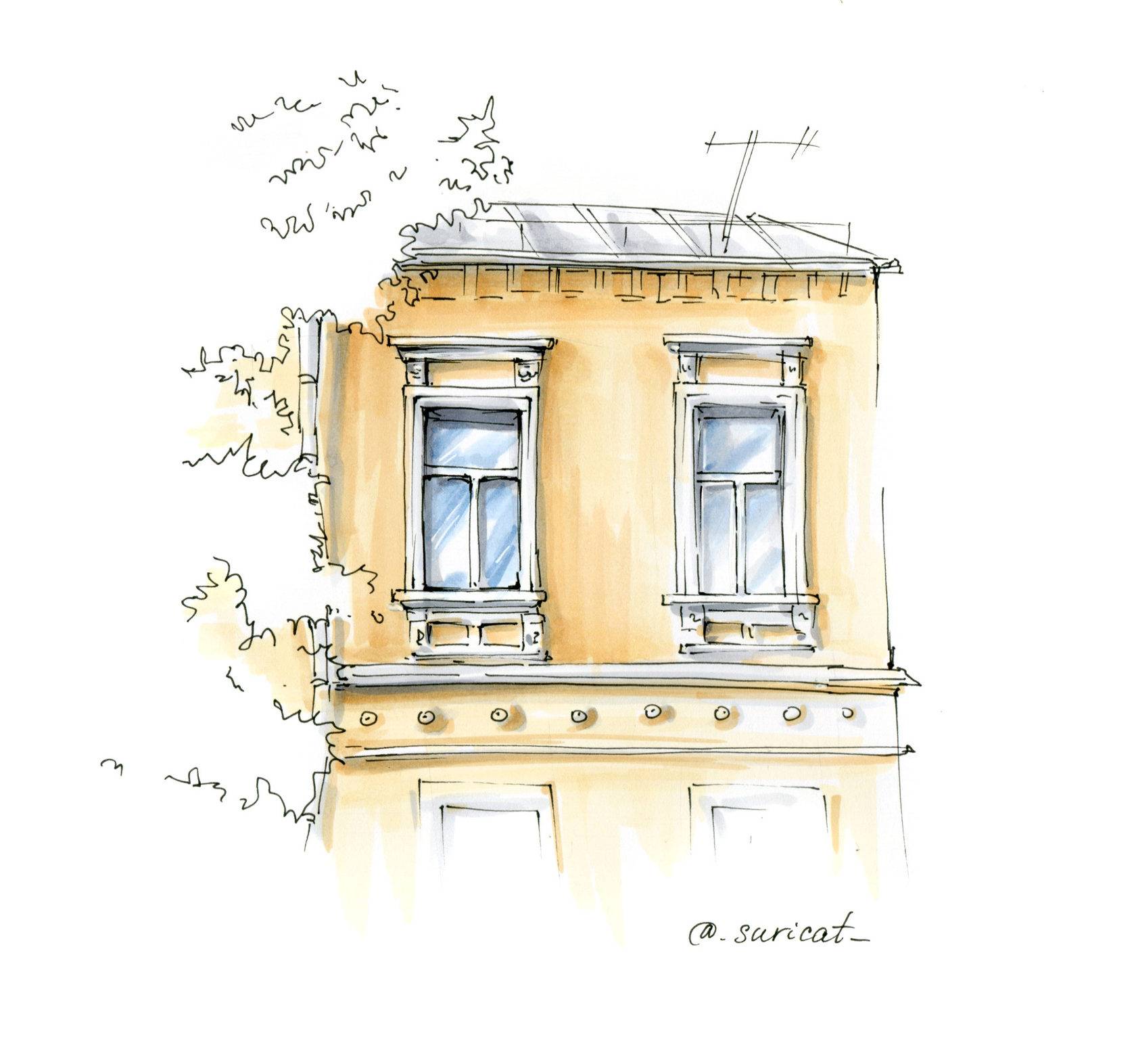 Как непохоже изобразить похожие объекты? Как управлять вниманием зрителя? Как рисовать зелень? Какие приемы и средства выразительности применяются в быстрых зарисовках? Обо всем об этом поговорим на примере рисования фасада обычного московского здания.