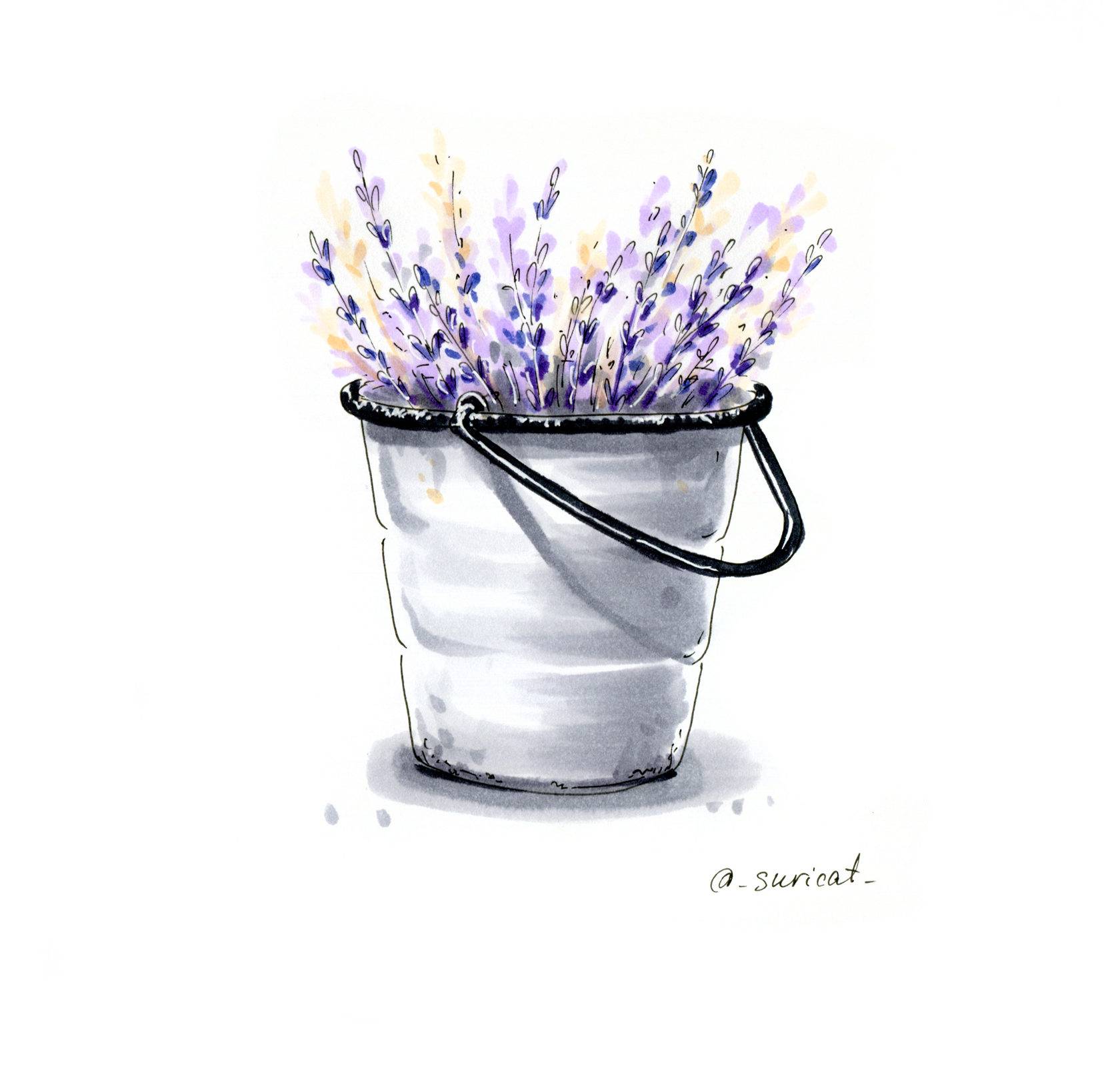 Зачастую различные дома и кафе украшены цветами и растениями: иногда в кадках, иногда в горшках, иногда и в жестяных ведрах. Как раз последний пример мы и рассмотрим: как быстро зарисовать пучок лаванды в небольшом ведерке.