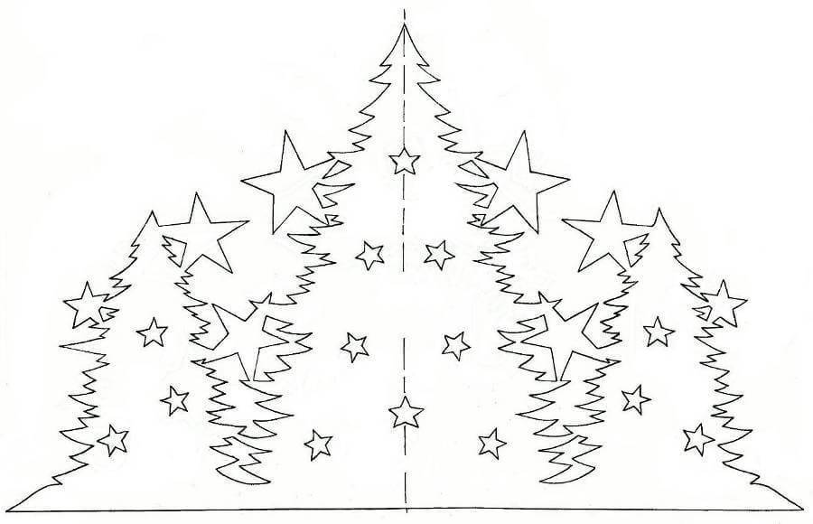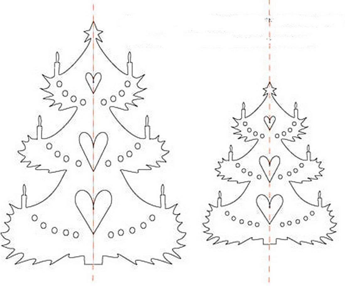Трафареты елки на Новый год для вырезания из бумаги на окно: фото