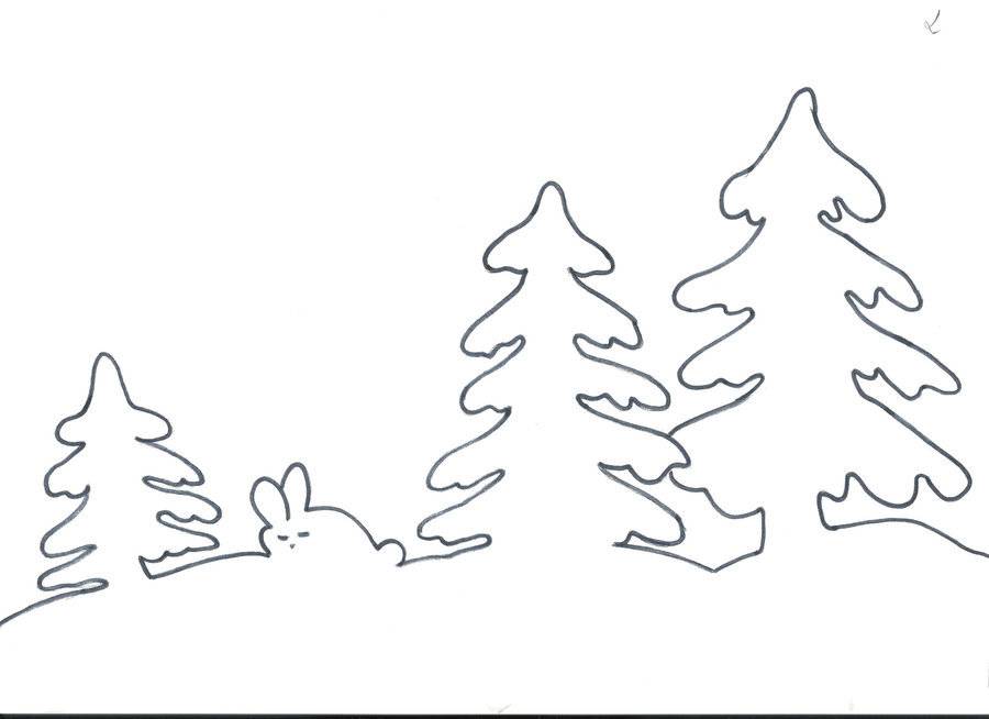 - Гелевой ручкой или акварелью с помощью тонкой кисточки нарисуйте на белой плотной основе изображение новогодней елочки.