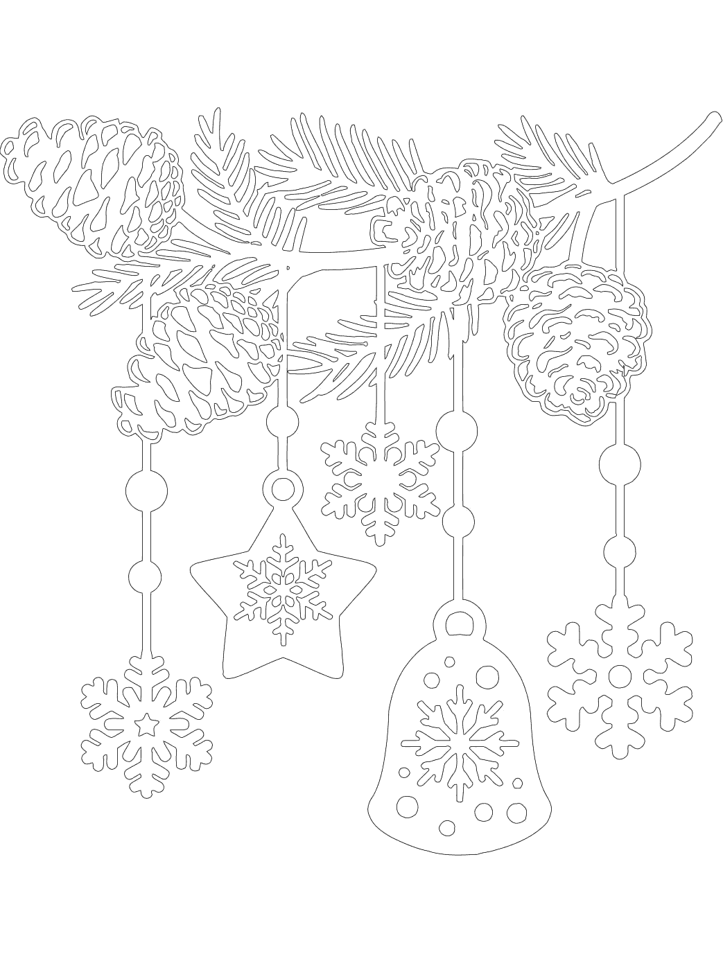 трафареты для вырезания гирлянд из новогодних елок, пример 5