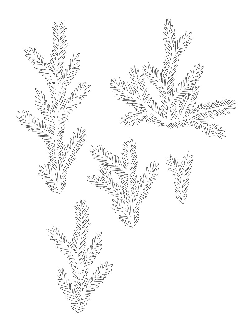 трафареты для вырезания гирлянд из новогодних елок, пример 1