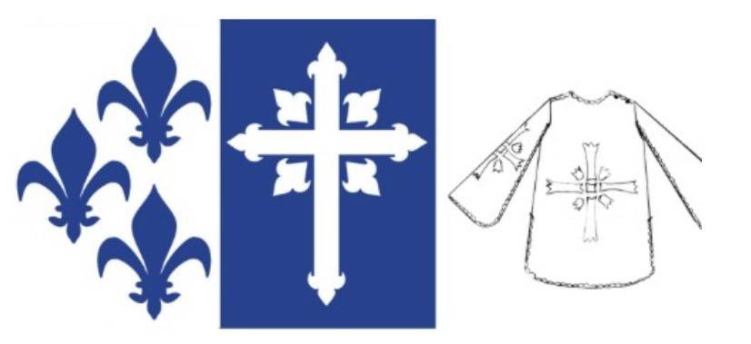 - плащ-накидке небесно-голубого цвета, на спинке и передней части которой располагаются кресты серебристой расцветки. Они есть также и на средней части рукава;
