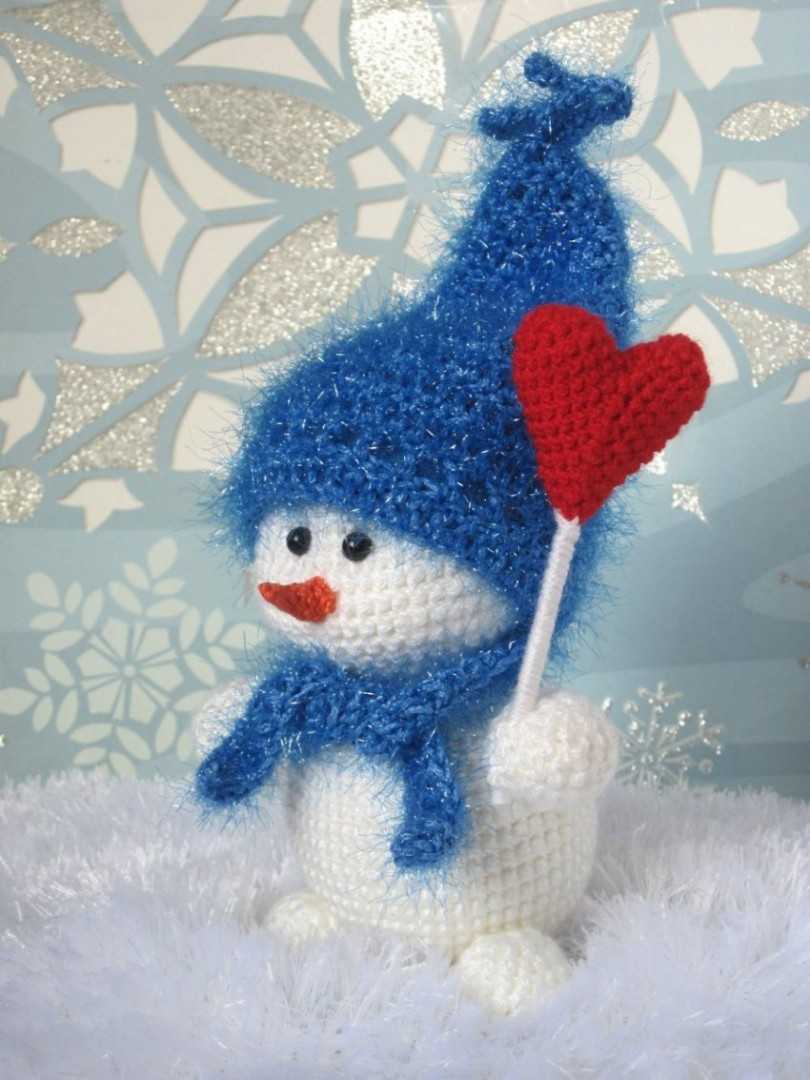 Миловидные, мини снеговички выходят в стиле японского искусства-амигуруми. Их можно вешать для красоты на ёлку, на сумку, рюкзак, пинал, ключи, мобильный телефон или просто играть. Рост стандартно не превышает ладошку. Благодаря забавным личикам, они становятся одушевлёнными.