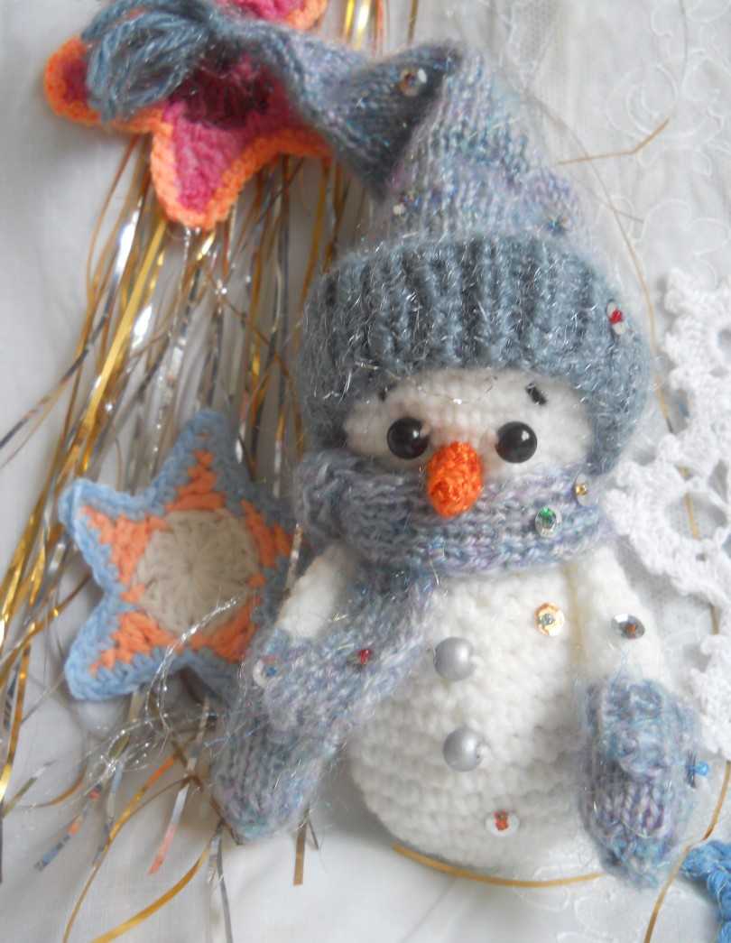 Вот мастер-класс пошагово для начинающих, который поможет связать маленького снеговика:
