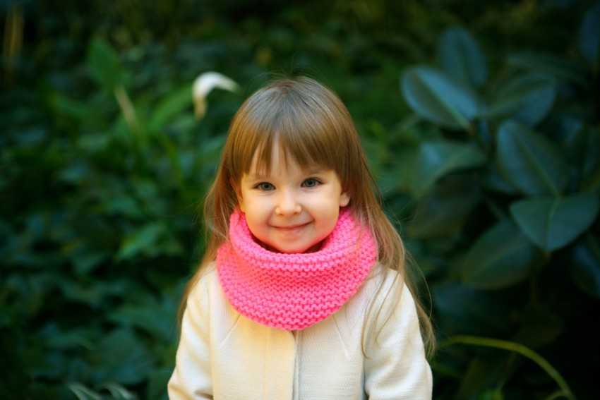 Детский шарф-трубу не обязательно наполнять сложными узорами, хотя для девочки можно выбрать и такой вариант. Все же, здесь главное тепло и удобство, а для них вполне подходят лицевые и изнаночные петли. Инструкция по созданию спицами шарфа-хомута для девочки своими руками состоит из нескольких простых шагов:
