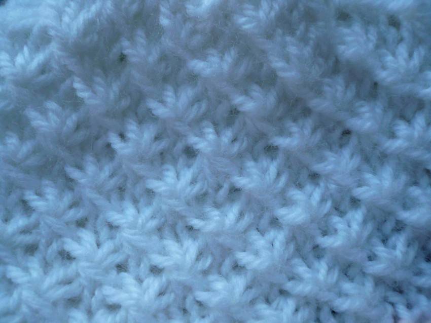 Вязать следует лишь лицевыми петлями. Они выглядят рельефными и крепко держатся.