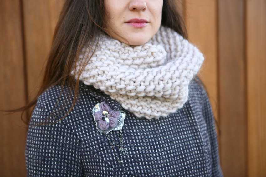 Объемный снуд хорошо зашишает шею от ветра и холода
