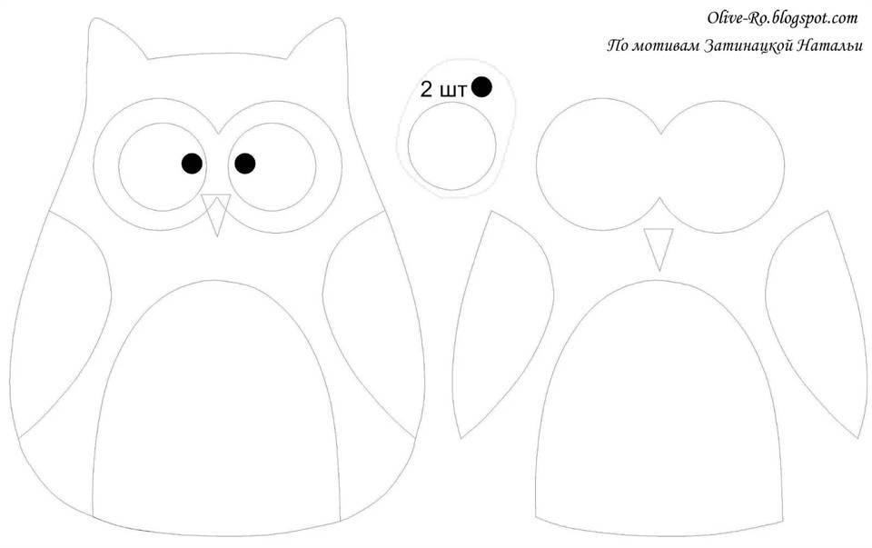 Итак, прежде чем приступить к основной работе, необходимо подготовить выкройку игрушки сова своими руками. Для этого на плотном листе бумаги нужно начертить заготовки: