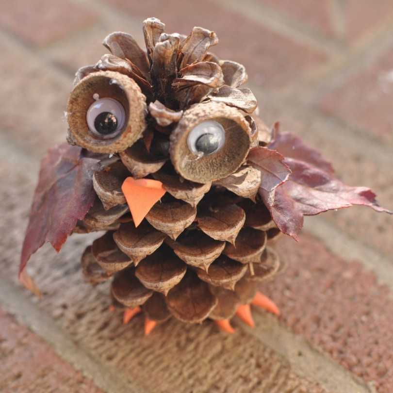 Разнообразие шишек вдохновляет на создание поделок. Рассмотрим мастер класс, как сделать поделку сову из шишки. Чем она крупнее, тем лучше. В идеале брать кедровую, но она встречается крайне редко. Поэтому возьмем еловую и сосновую шишку крупного размера.