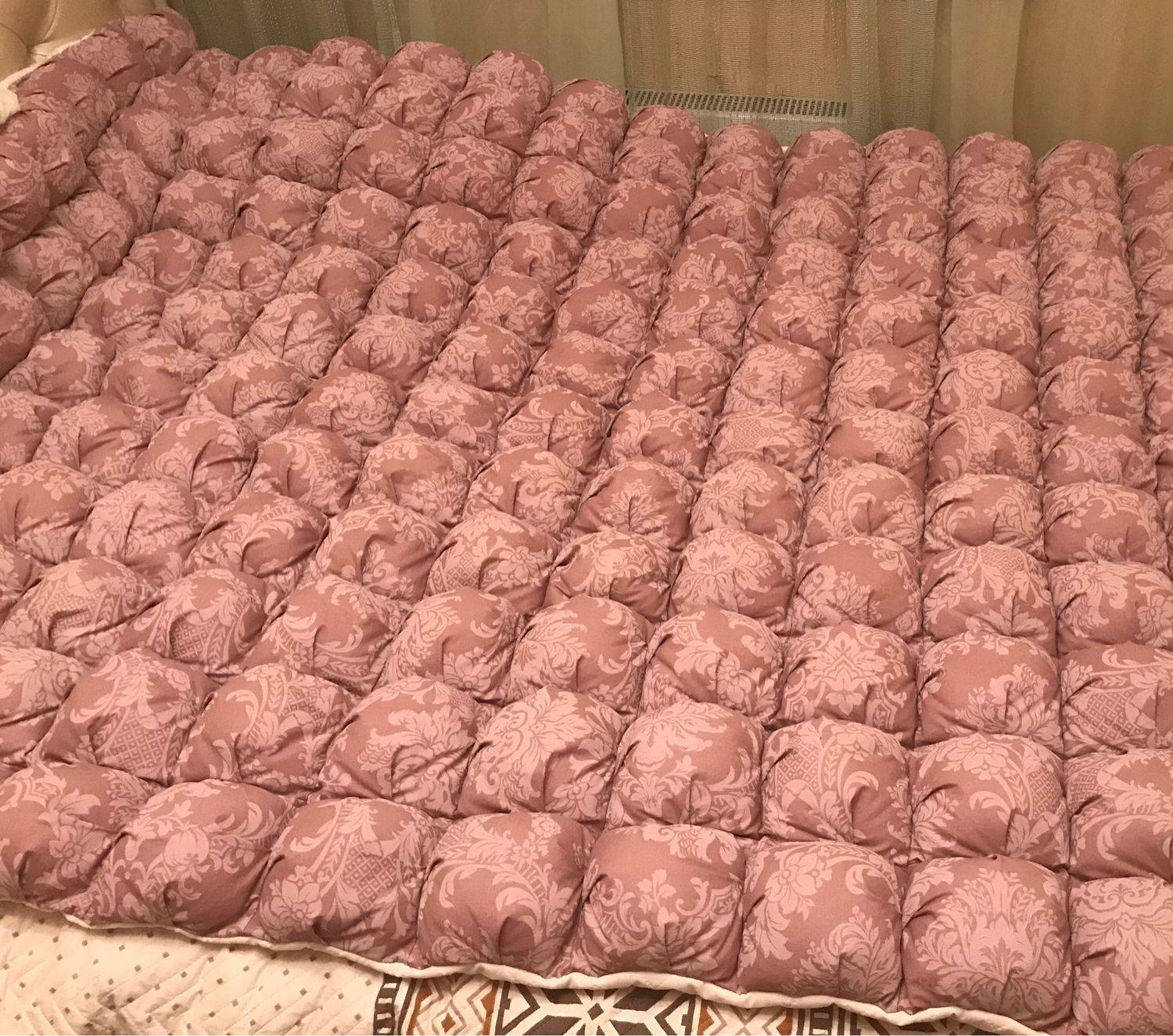 Ещё один вариант самостоятельного шитья необычного объёмного покрывала – это его сборка из воздушных пузырей. Используя те же материалы, что и в предыдущем мастер-классе, можно с лёгкостью смастерить простое и красивое покрывало.