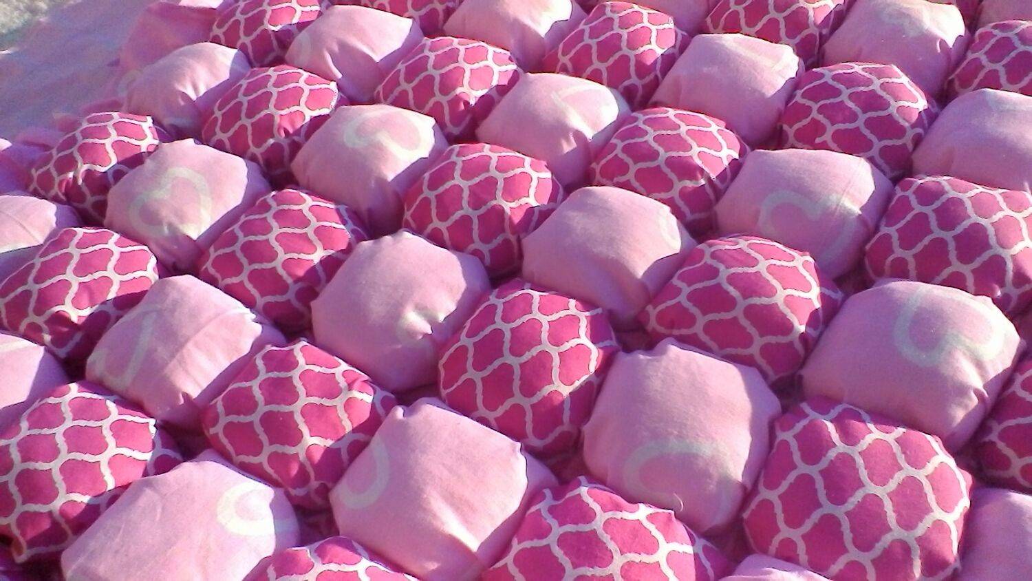 Объемное лоскутное творчество очень трудоемкое, пошив одеяла бонбон требует большого количества времени и аккуратности, поэтому работы профессиональных мастеров стоят дорого. Начинающим в этом деле рекомендуются инструкции мастер–классов с фото. Небольшие диванные подушечки, сидушки на кресло или стул – отличные идеи для ваших «первых шагов».