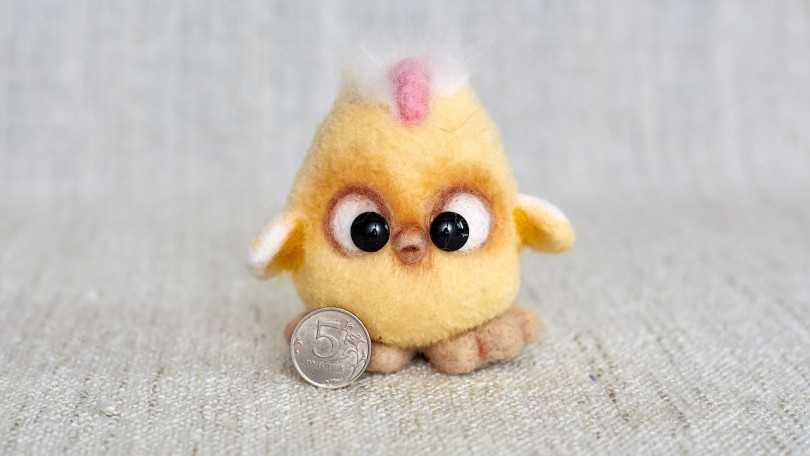 Готовое изделие должно быть уплотненным, не волосистым, при надавливании не сминаться. Когда все детали свалены и соединены, поделке необходимо придать окончательный вид. Для этого от основного пучка шерсти отделяются несколько волокон, которые мелко разрывают между собой, превращая в легкий пух. Затем тонким слоем наносят на готовую поверхность и иглой меньшего диаметра приваливают. Следующий слой укладывают внахлест. Таким методом обрабатывают всю поделку. Поверхность должна получиться гладкой и отшлифованной.
