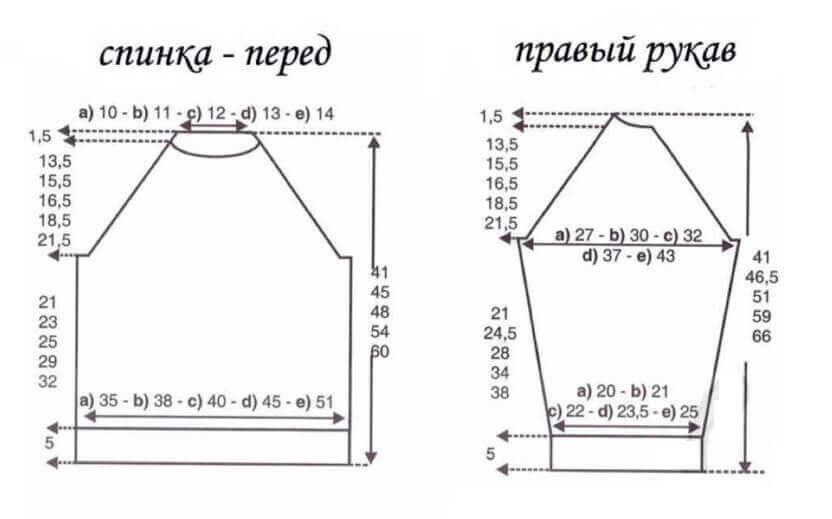 Пример расчета количества петель при вязании реглана сверху вниз