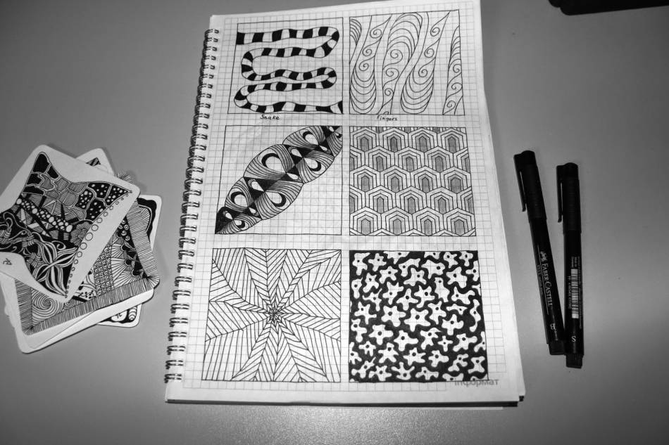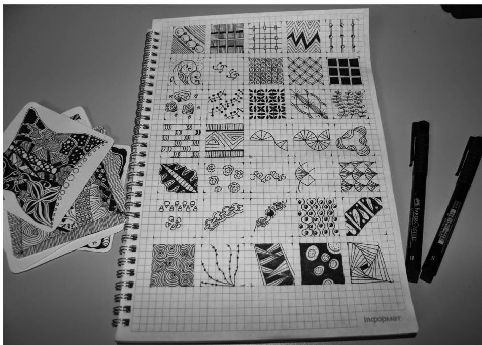 Zentangle (зентангле) — это те рисунки, которые создаются неосознанно во время ожидания, или просто для того, чтобы расслабиться, успокоиться.