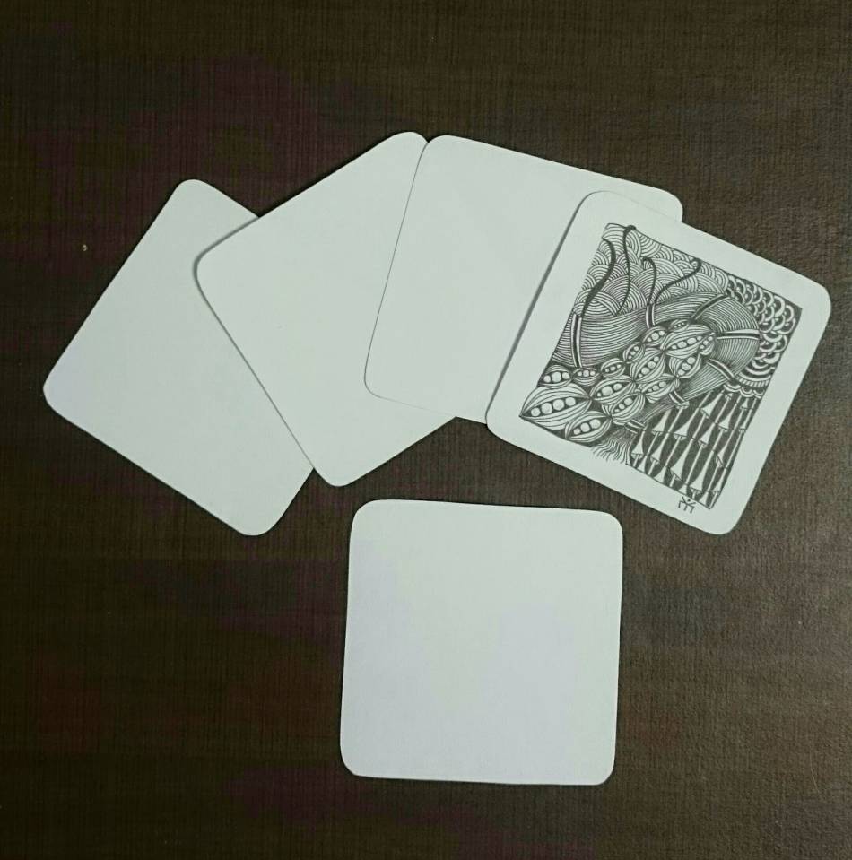 Рисунок в технике зентангл отличается тем, что на его выполнение необходима значительная концентрация внимания. Рисуют узоры на квадратных карточках, размер которых 9х9 см.