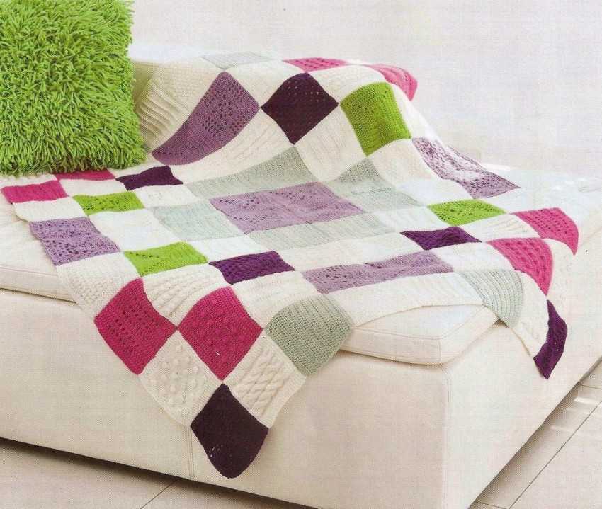 - Вязанный пэчворк – используются не лоскуты ткани, а вязаные мотивы, специально созданные под конкретную задумку.