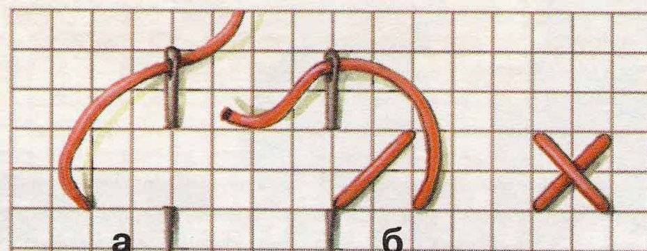 Первый нижний диагональный стежок называется «полукрест», им так же выполняют отдельные участки вышивки.