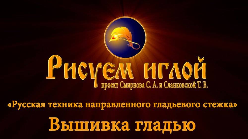 - Пошагово рассказывается как делать прямой гладьевый стежок: закрепить нить, прошивать стежки нужно, выстраивая их в одну линию. Для удобства при зацепе иглы за ткань, надо надавить двумя пальцами иглой под место предполагаемого зацепа.