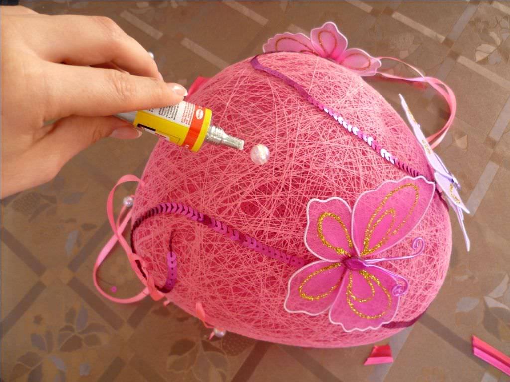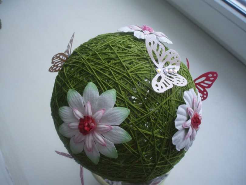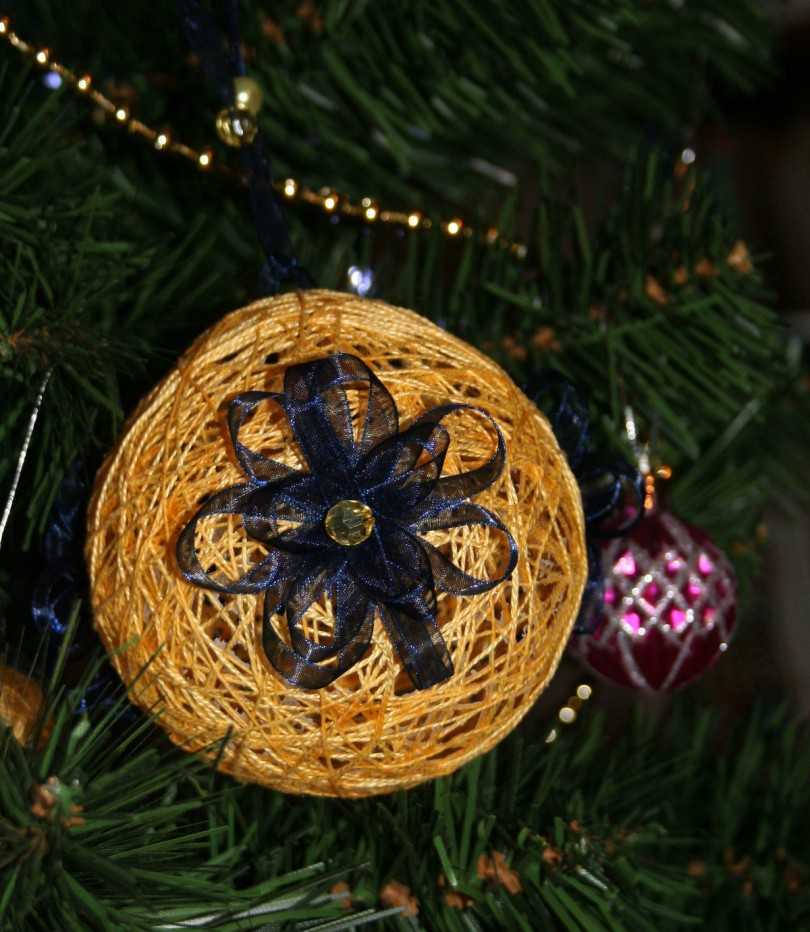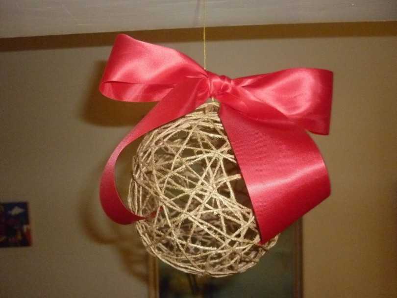 Если вы хотите повесить шар, то позаботьтесь о веревочке. Вот и готов наш уникальный шар. Можете украсить его бантиком или любым другим аксессуаром.