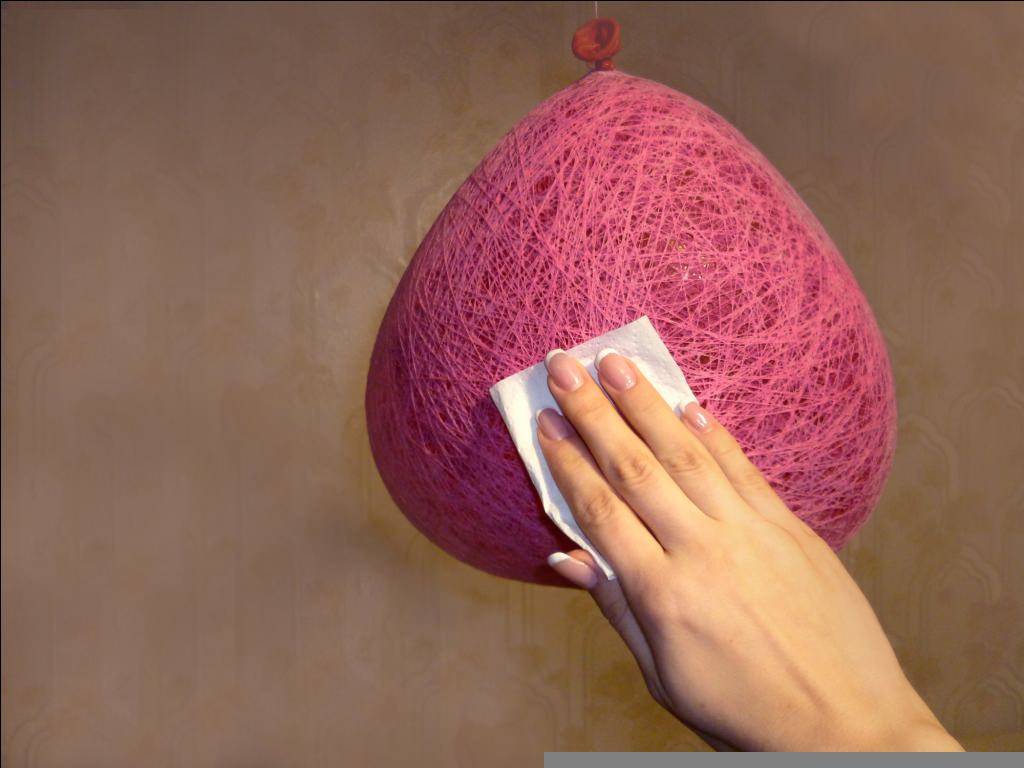 Перед наматыванием нити не забываем смазать воздушный шар хорошим слоем любого крема или масла, чтобы он не приклеился к нитке.