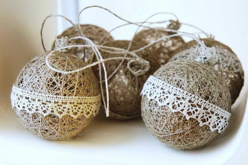 На шары из ниток материал можно брать любого цвета, но подойдут к любому интерьеру классический белый или серебристый.