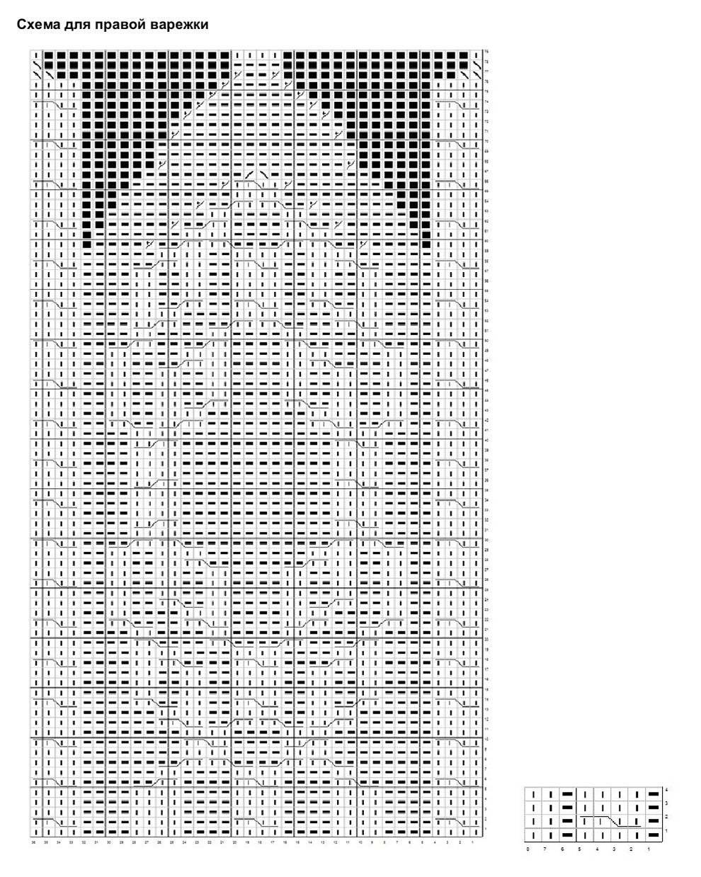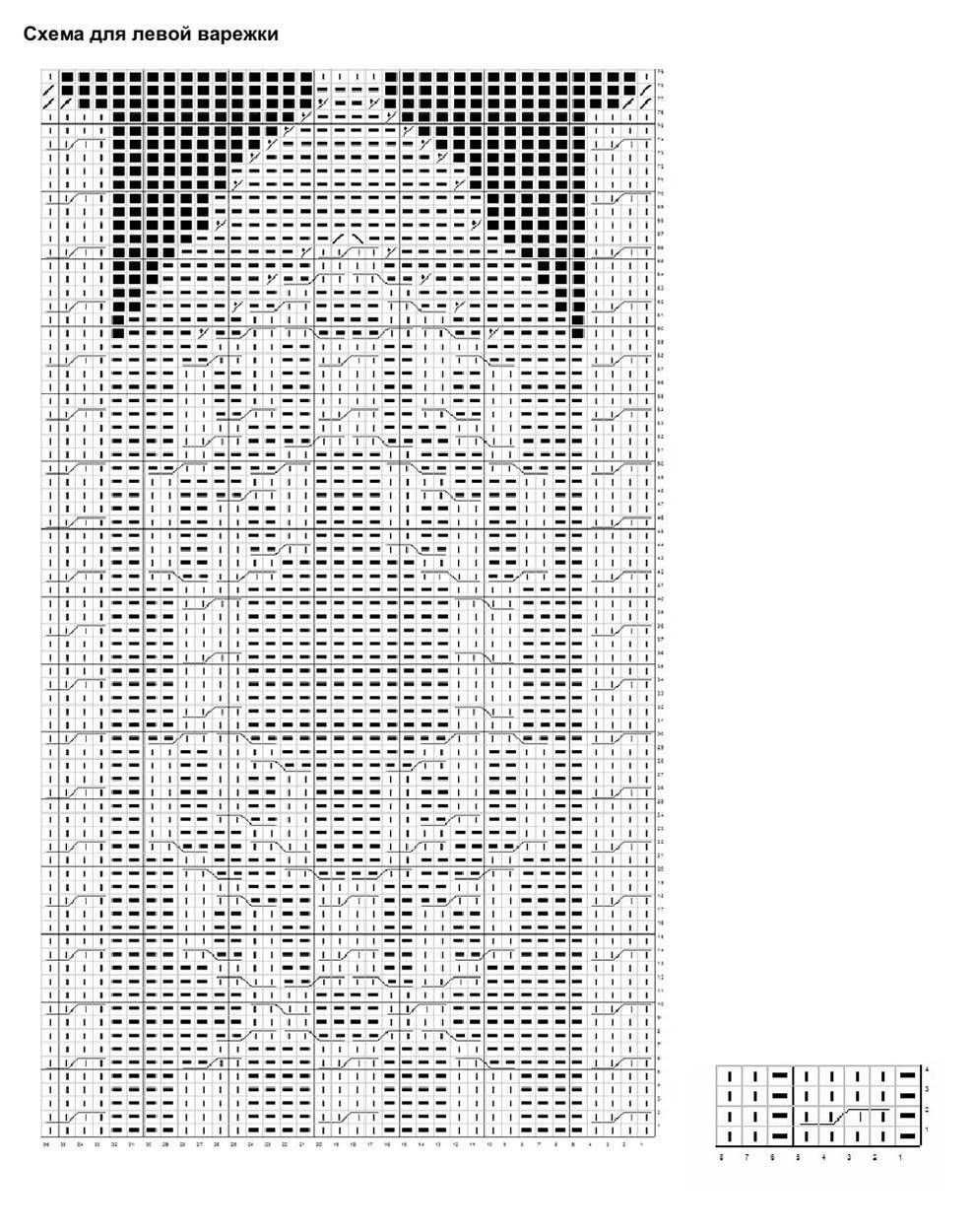 Отличие этого способа в том, что варежка вяжется с клином – плавным увеличением ширины до начала вплетения большого пальца. Схема следующая: