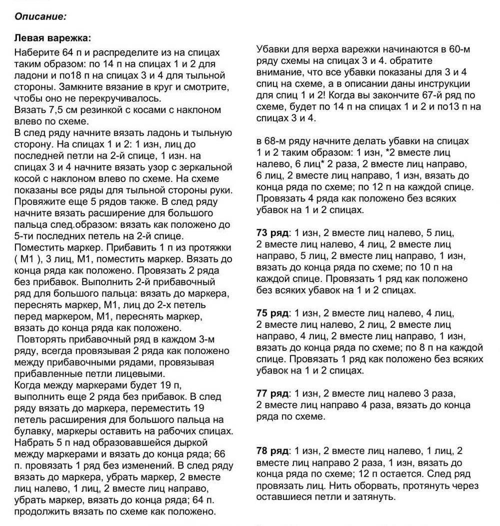 Варежки с косами спицами для детей 5 — 10 лет: схема, описание