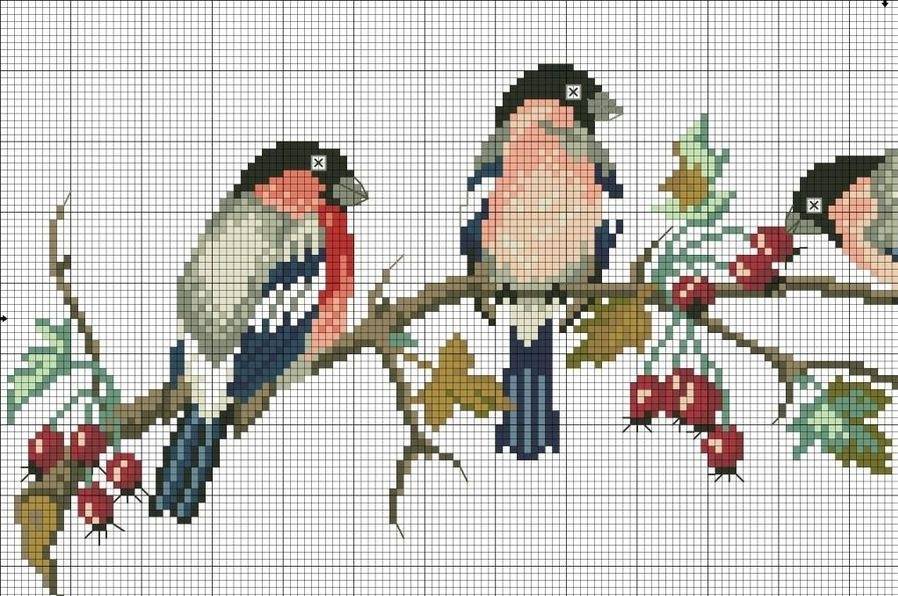 В варианте варежек для мальчика выполните рисунок снегирей с лаконичной веткой и/или парой-тройкой ягод рябины.
