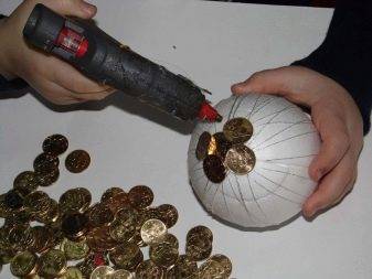 - Приклейте шар к основанию ствола термоклеем