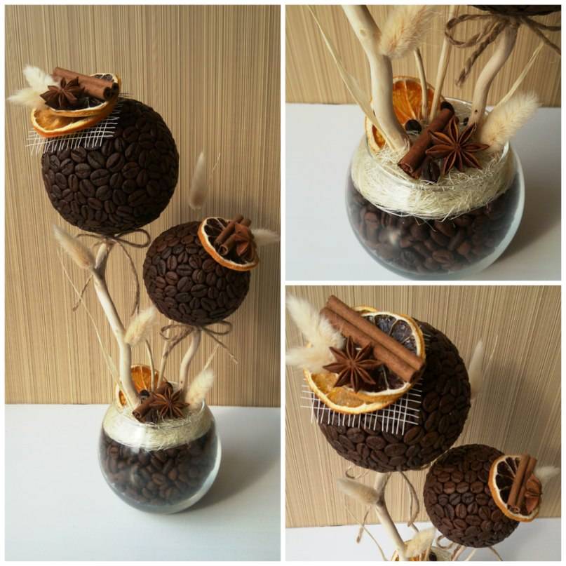 Если мужчина любит кофе, то топиарий, выполненный из кофейных зерен, это что надо!