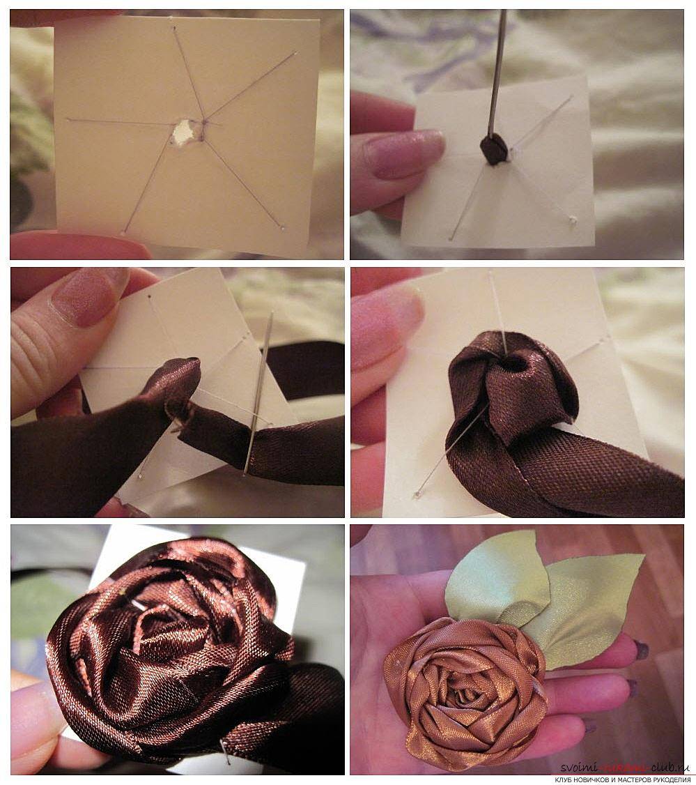Ниже в видео-ролике показан мастер-класс о создании роз из атласных лент своими руками, возможно, этот способ покажется Вам более простым в исполнении.