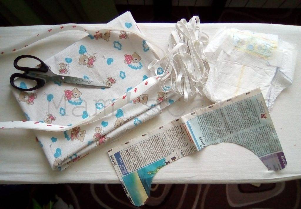 Для пошива необычного предмета гигиены младенца нам понадобятся простые материалы, которые можно купить в любом текстильном магазинчике.