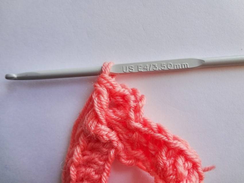 - 3р. – 1 лиц. пет + 1 лиц. за перед. и зад. стенку петли, 1 лиц. п., добавить 1 лиц., 1 лиц. Всего должно получиться 7 пет.