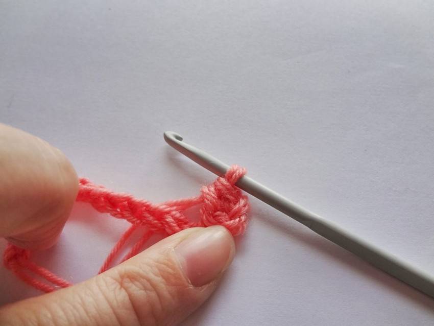 - Крючком набираю 5 воздушных петель, от них продолжают вязание по схеме.