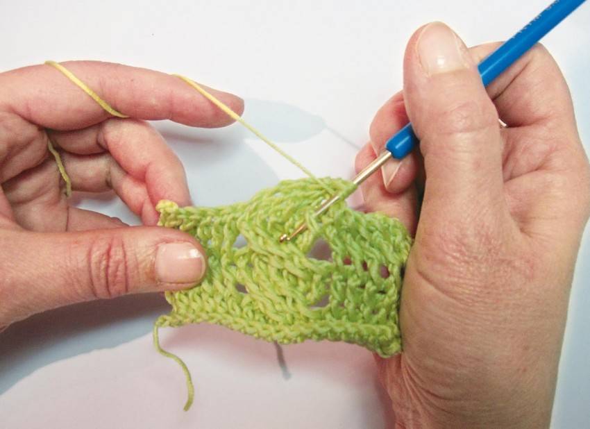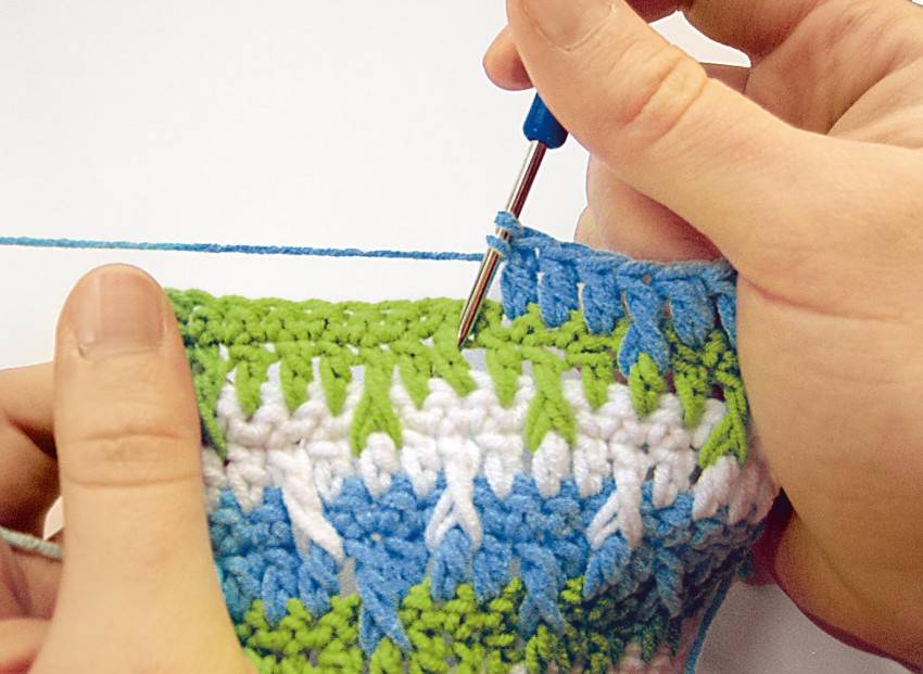 - Начиная со второго ряда, работают по схеме 10 рядов, следя за тем, чтобы изделие расширялось равномерно.