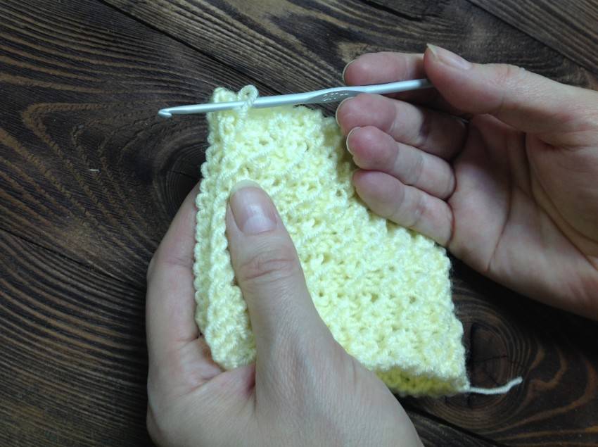 Пять первых рядов провязывать по три петельки, вторая петелька обязательно должна быть лицевой.