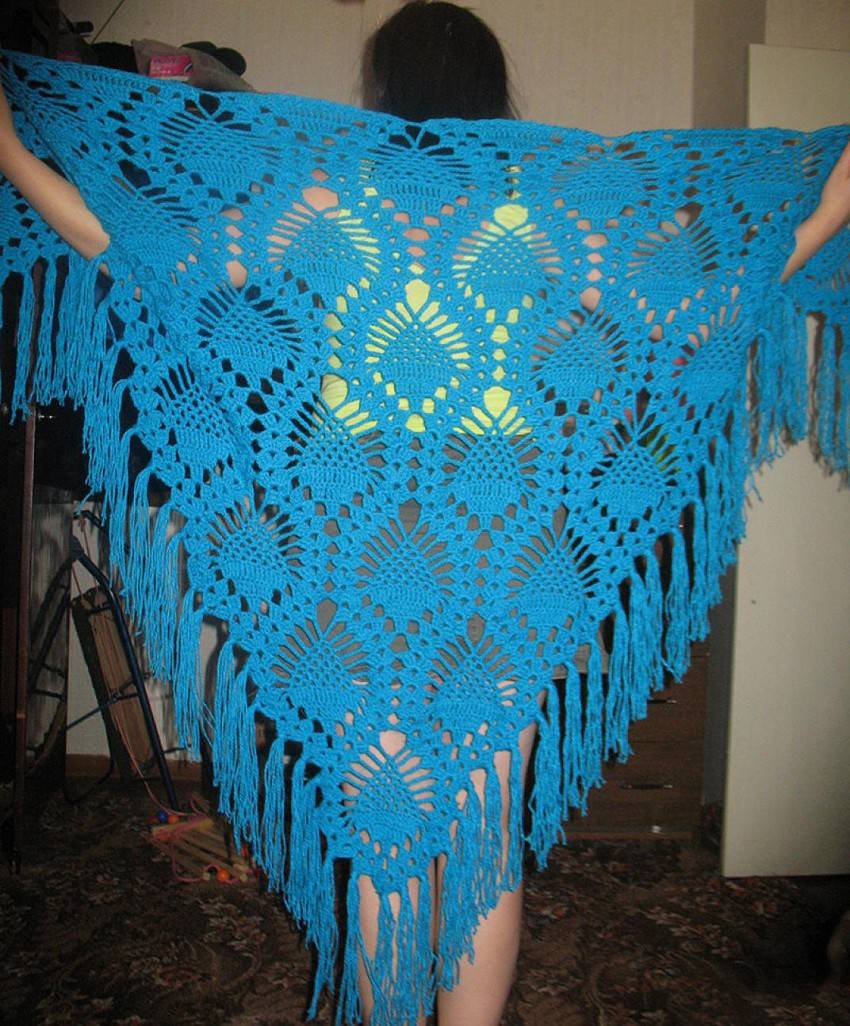 Если женщина хоть один раз пользовалась крючком или спицами, то связать такую шаль будет легко. Сделанная своими руками, она прекрасно дополнит женский образ и подойдет к любой одежде. Если решились связать шаль Харуни, значительно упростит задачу описание работы.