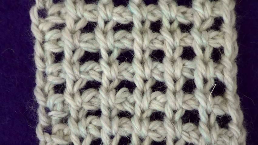 Плотность вязания в данной шали сетчатой каймы будет равна 4,5 аркам и 14 рядам в квадрате 10 на 10 см.