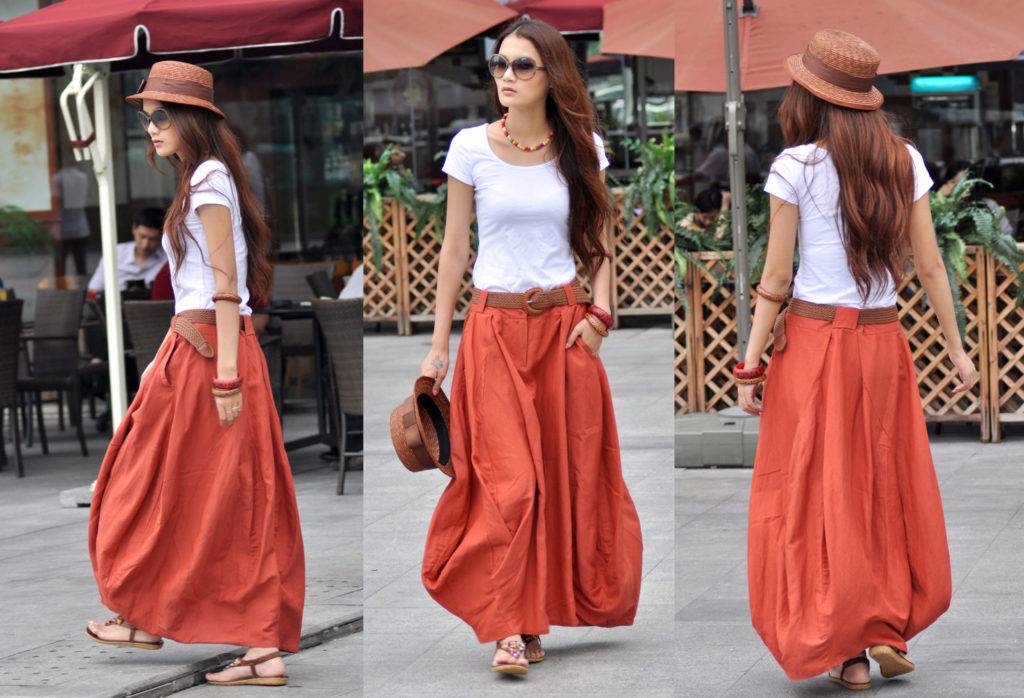 Этот элемент «проживает» в гардеробе многих последовательниц стиля бохо. Объемная длинная юбка легко скрывает дефекты фигуры в области живота и бедер, если таковы имеются.