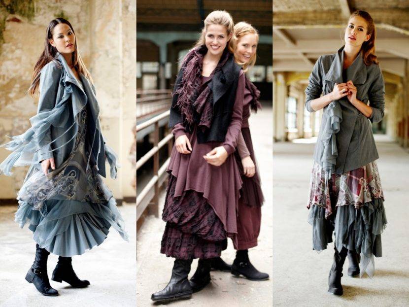 Это смешение сразу нескольких стилей: кантри, винтаж, гранж, хиппи, этно. Последний особенно заметен, поскольку он сочетает в себе яркие детали национальной одежды жителей Америки и Австралии.