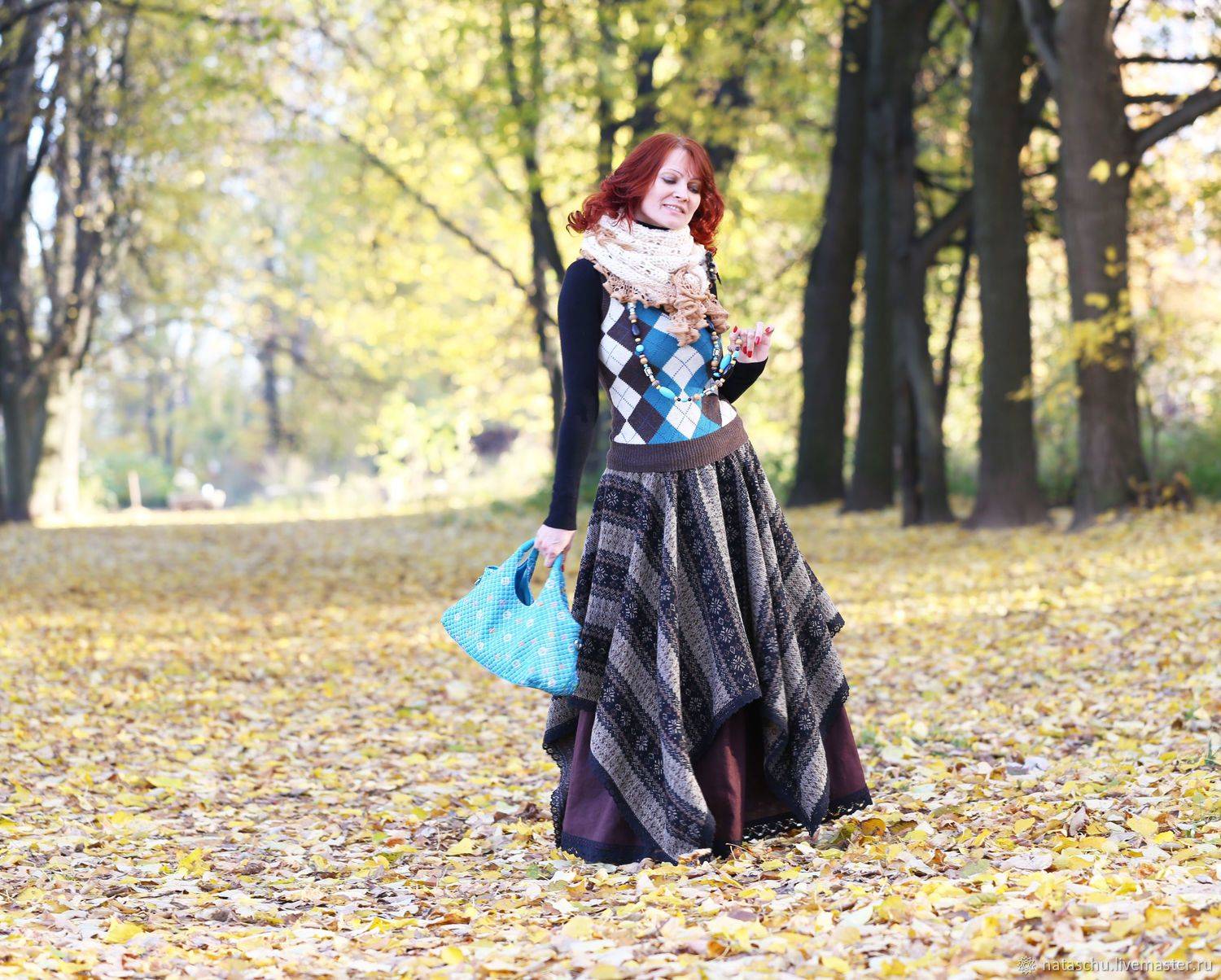 Для пошива теплой вещи лучше всего использовать мешковину, ткань из шерсти либо трикотаж. Не скупитесь на декор, а саму юбку сделайте ярче. Это позволит отвести взгляд прохожих от проблемных зон.
