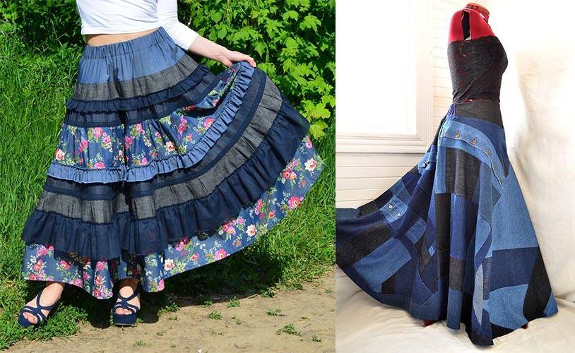 Джинсовая юбка бохо из плотного денима отличный вариант. При пошиве используется сочетание различных по цвету лоскутков материала. Каждая женщина в таком наряде будет выглядеть женственно и стильно.