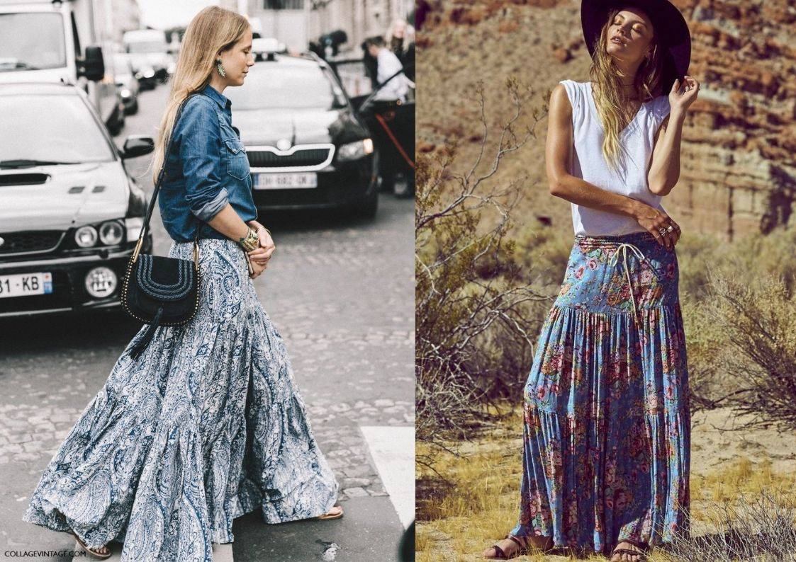 Этот элемент «проживает» в гардеробе многих последовательниц стиля бохо. Объемная длинная юбка легко скрывает дефекты фигуры в области живота и бедер, если таковы имеются.
