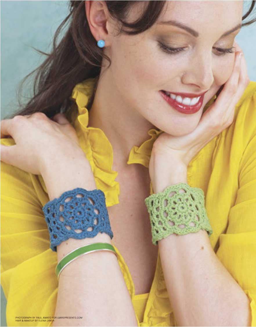 Данный вариант вязаных крючком браслетов внешне напоминает те, что носили когда-то хиппи.